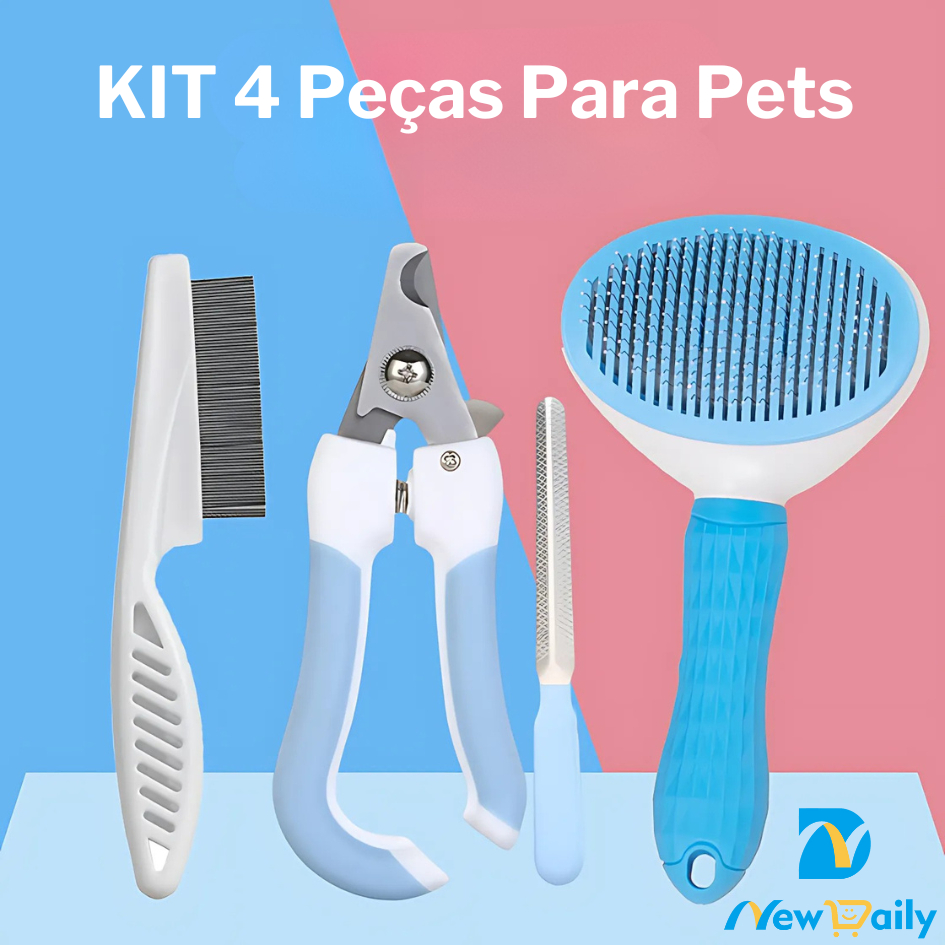 Kit de Cuidados para Pets – Escova, Cortador de Unhas e Pente de Pulgas