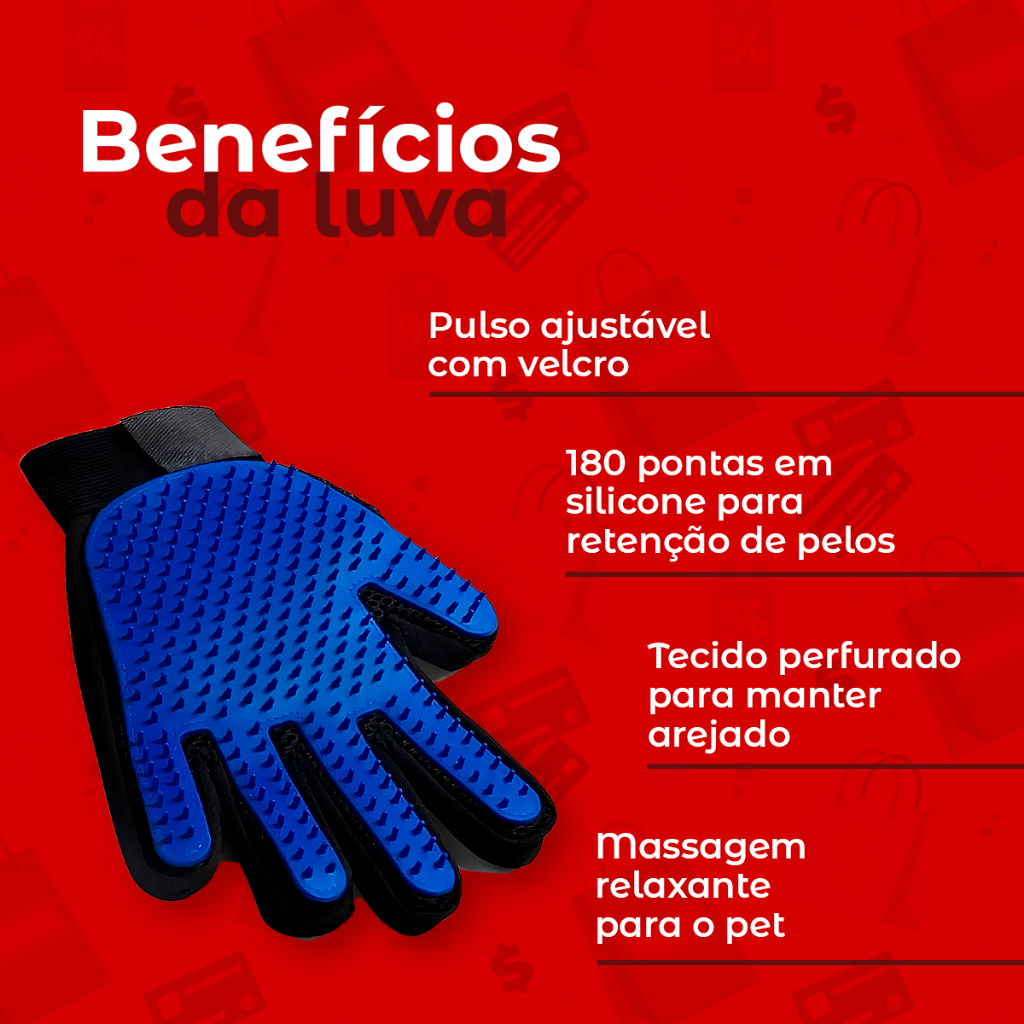 - Menos Pelos pela Casa: A luva mágica remove os pelos soltos com facilidade, ideal para cães e gatos.