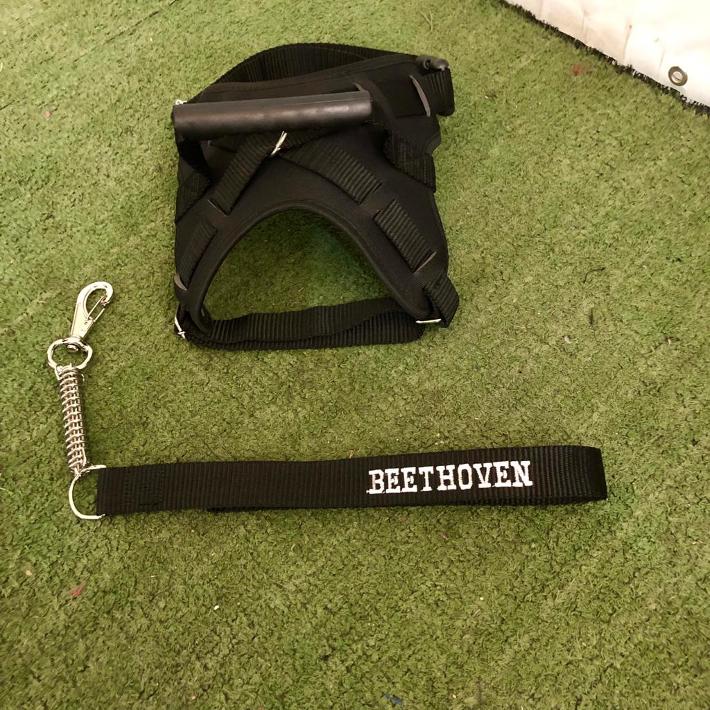 Peitoral fabricado em borracha neoprene macia, garantindo conforto e evitando atrito.